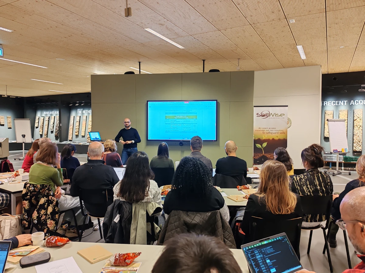 The meeting took place at Building Gaia (ISRIC / Wageningen University & Research), with plenary sessions held in the World Soil Museum. Surrounded by soil monoliths from around the world, participants were immersed in a setting that perfectly reflects the mission of SoilWise: improving access to soil knowledge and data.